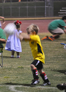 Of course I was all ready for more pictures so Jared could somewhat experience soccer too, but my camera didn't want to cooperate quite as well as the first game. The pics are a little blurry at times, but still gonna post them.